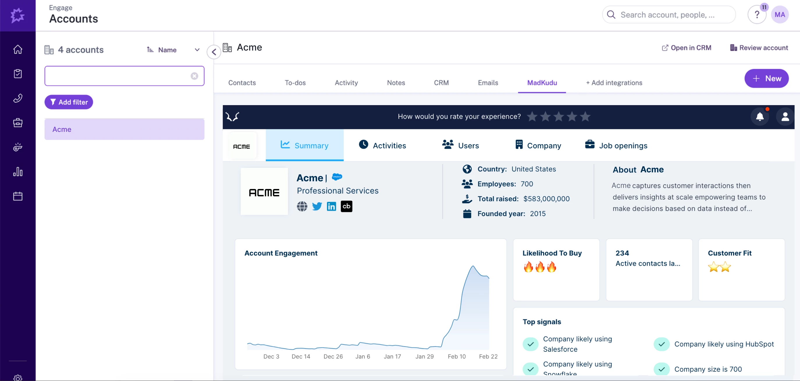 Embed your solution directly inside Gong Account pages and empower users with more seamless workflows.
